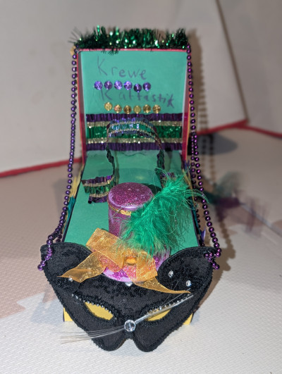 Children who enter a shoebox float in the online gallery are invited to bring their finished shoebox floats to the BOS Float Gallery at the Purina Pet Parade in the staging lot at 12th and Allen, on February 8, to ride on an actual Mardi Gras float in the Purina Pet Parade! (Children must be accompanied by a parent or guardian and complete a waiver form).